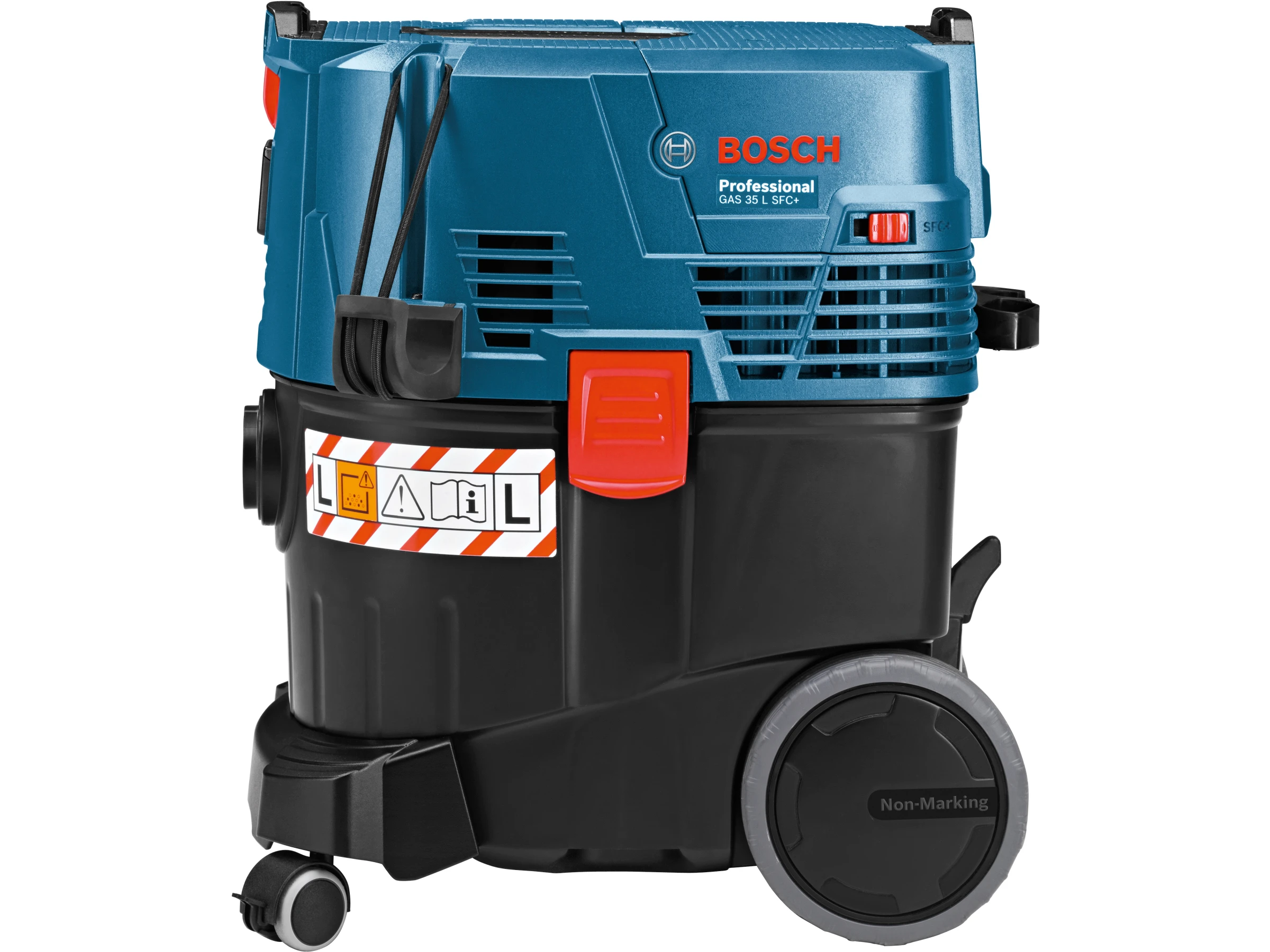 Mit einem stabilen Fahrwerk, großen Rädern und einem kompakten Design ist der GAS 35 L SFC+ einfach zu transportieren und bietet gleichzeitig hervorragende Stabilität auf unebenen Oberflächen. Ein integrierter Transportgriff und eine praktische Zubehörhalterung sorgen für zusätzlichen Komfort und Ordnung am Arbeitsplatz.