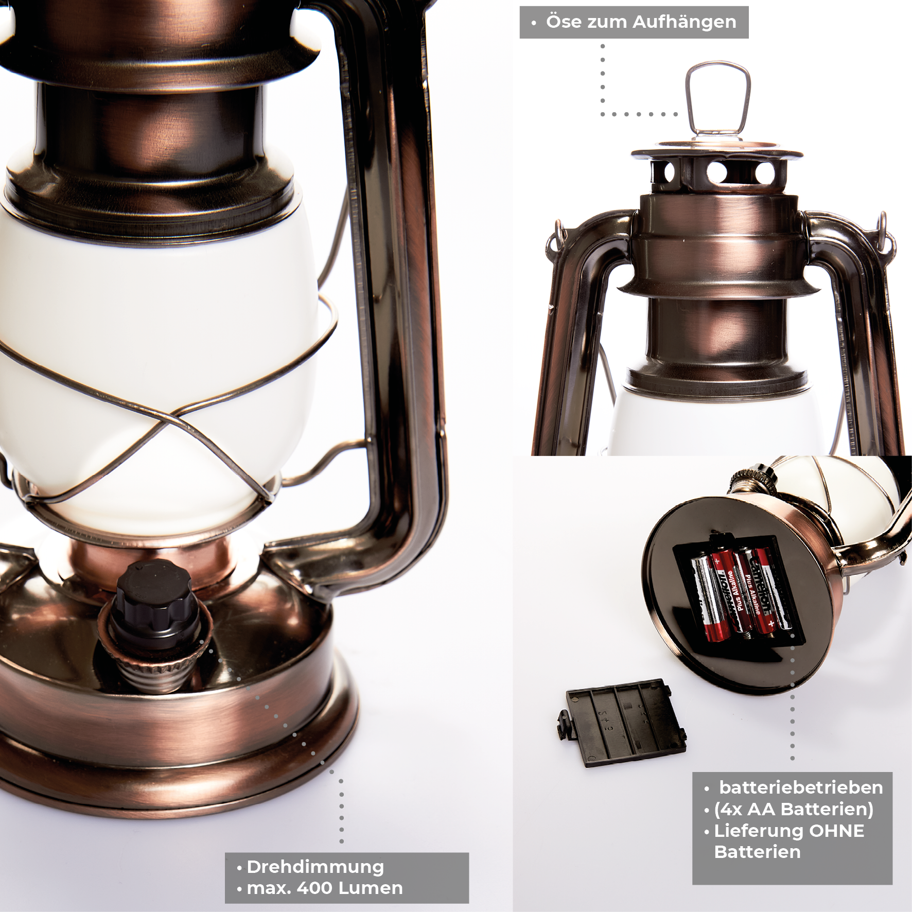 Produktinformationen " LED-Laterne McShine "Retro" 23,5cm, Batterie, warmweiß, dimmbar"