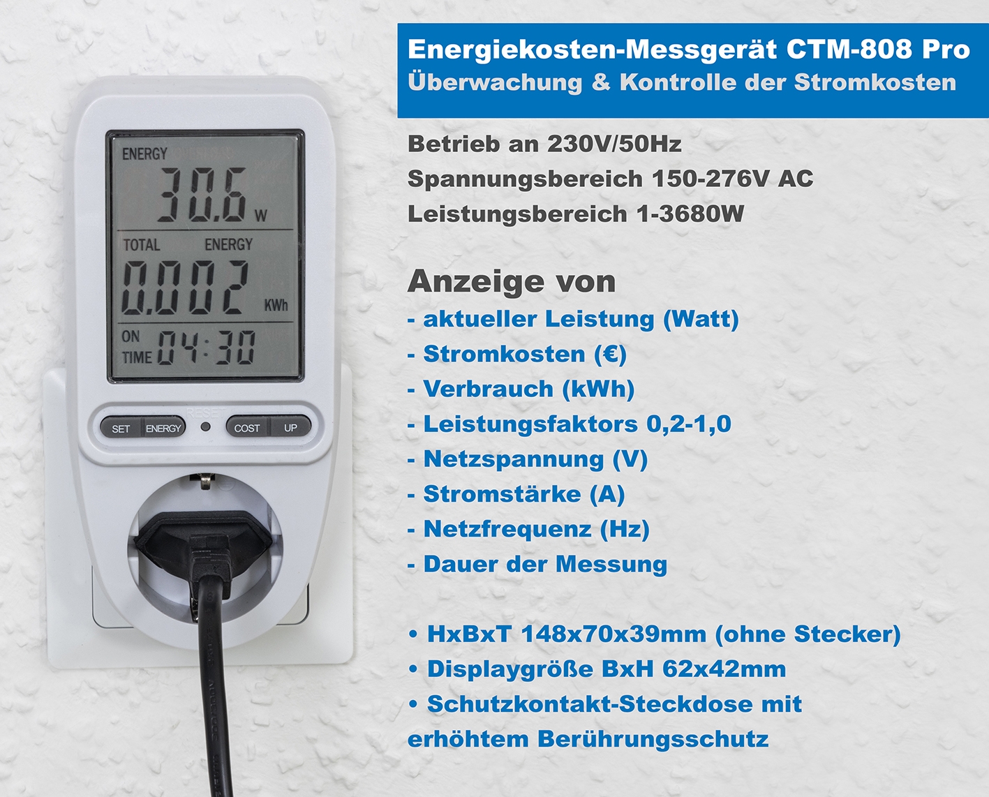 Energiekosten-Messgerät "CTM-808 Pro" – Einfach deinen Stromverbrauch im Blick behalten!