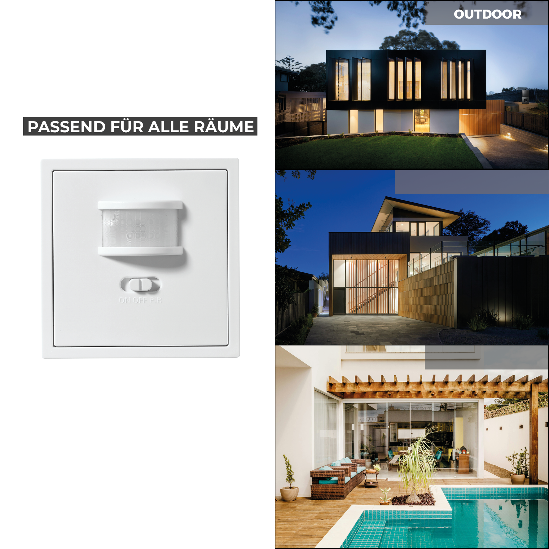 - Stilvolles Design: Der schmale Rahmen und die samtige Oberfläche sorgen dafür, dass der Bewegungsmelder nicht aufdringlich wirkt. Er ist perfekt für elegante Wohnräume, ganz gleich, ob in strahlendem Weiß oder modernem Anthrazit.
